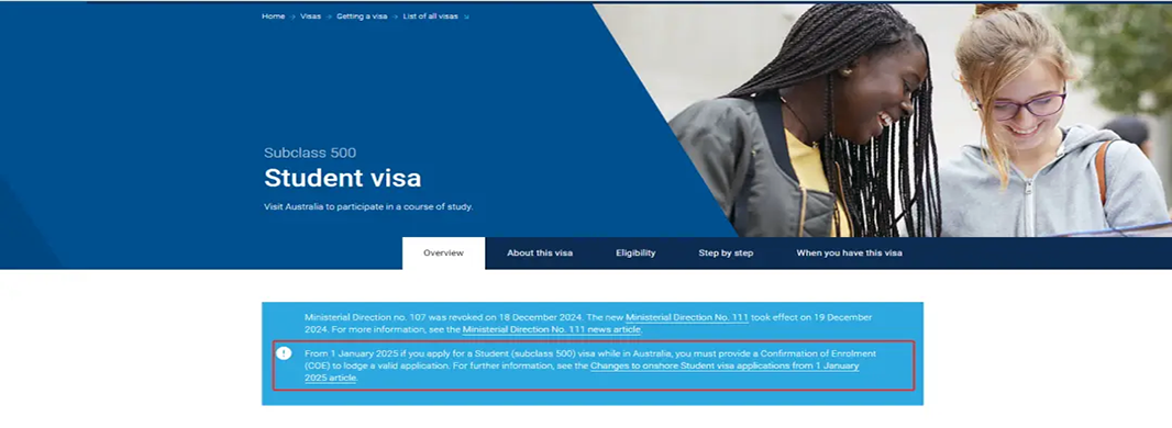 New regulations for Australian student visas: Starting from 2025, domestic applications must provide a Confirmation of Enrollment (CoE) letter