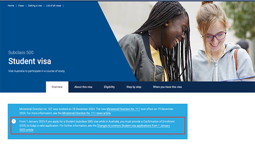 Starting from January 1, 2025, the Australian Department of Home Affairs has adjusted the application requirements for student visas (Class 500). According to the new regulations, domestic applicants must provide a Confirmation of Enrollment (CoE) when submitting their student visa application. Only the offer letter will no longer be accepted. This change applies to applications submitted on or after January 1, 2025, and previously submitted applications containing only admission letters are not affected.